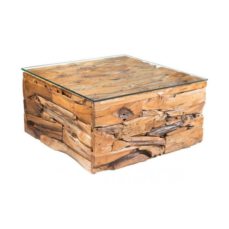 Teak wood simplicity creates our impressive Erosion coffee table with tempered glass top. Group together for communal seating perfect for games or relaxed dining.