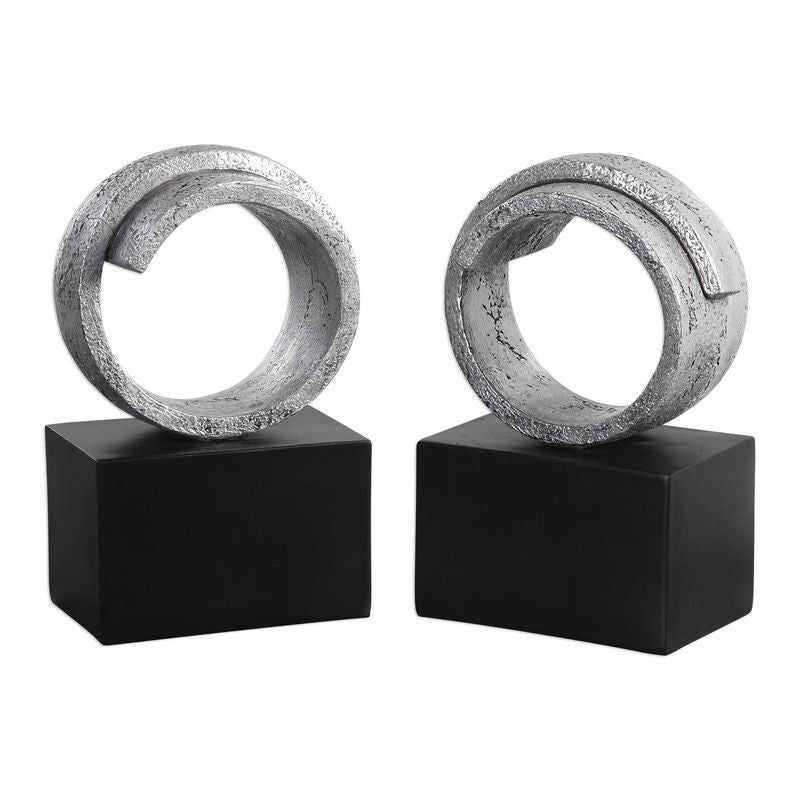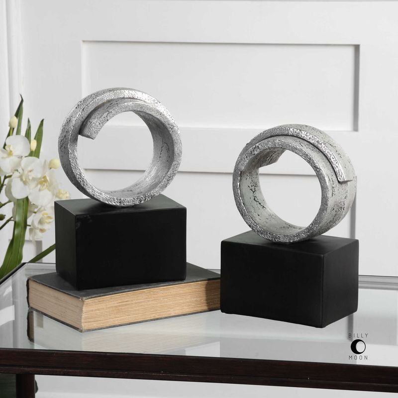 Add a contemporary twist to your bookshelves with these bookends finished in a bright, textured metallic silver with black bases.