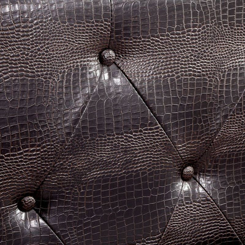 Unpretentious, unassuming, but clearly elegant, this headboard features exotic croc skin fabric texture defined by supple leatherette fabric to add quiet sophistication as it grounds your bed. The master bedroom just got an upgrade in luxury with this bed. - Contemporary Style - Crocodile Skin Leatherette - Button Tufted Headboard - Tapered Legs - Slat Kit Included - Solid Wood & Others - Available In 3 Colors