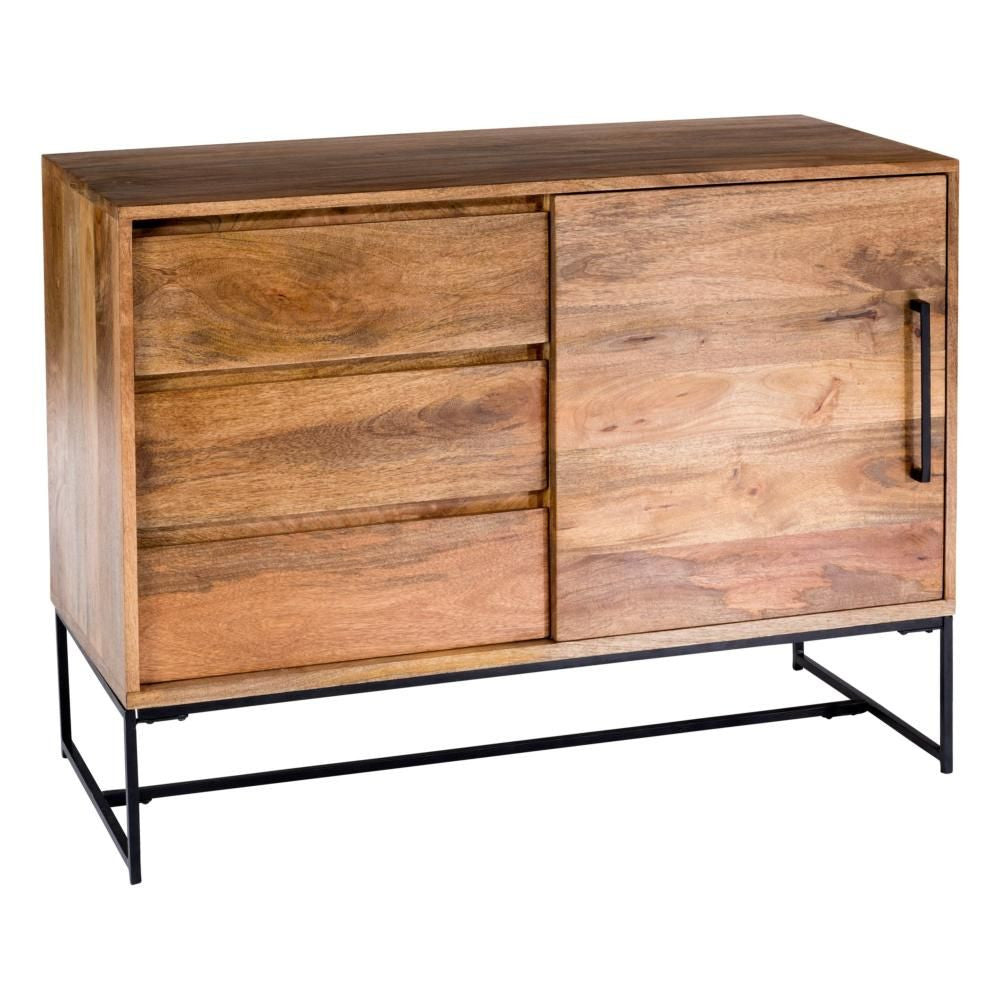Contemporary design. Drawer and cabinet combination for ample storage. Solid wood construction and metal.