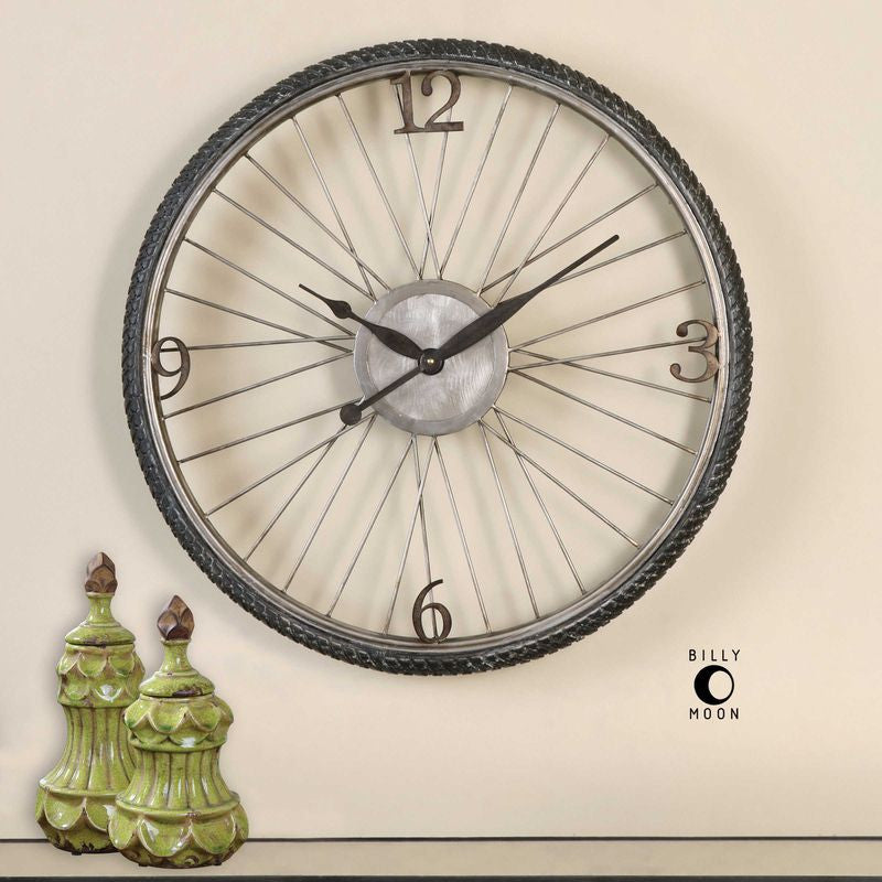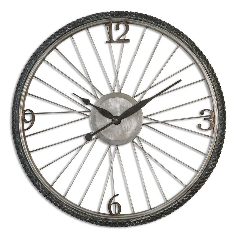 Antiqued silver champagne with aged black details. Quartz movement.