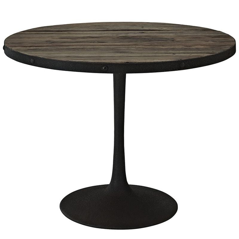 Deliberately implement down-to-earth aesthetics with the Drive industrial modern dining table. Fashioned on a cast iron pedestal base, the round pine top is braced in a rim of iron to connote progress amidst rustic conditions. In contrast to the standard four legged tables, the single stand variety has been gaining popularity over the past 60 years. Now with the resurgence of industrial modernism, the warehouse of yesteryear comes remodeled into its present stance as an art form.