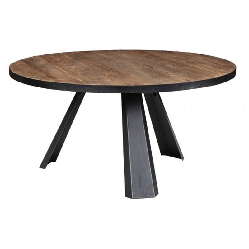 Erikson Round Dining Table - 60W x 60D x 30H, Elm Wood, IRON, Sustainable plantation grown wood, Solid wood construction, Hand distressed wood finish, Iron base, Seats up to 6, Transitional