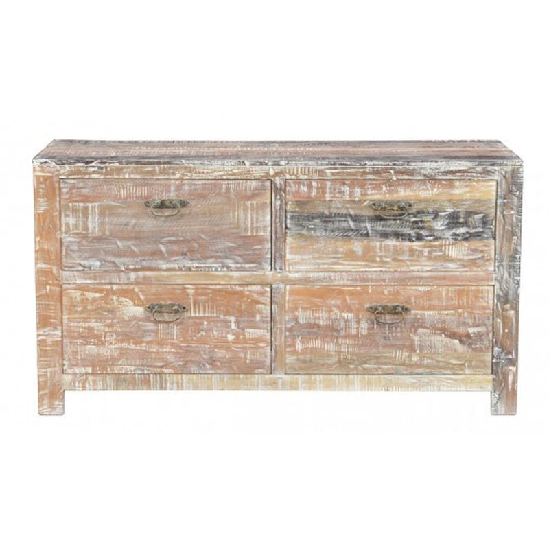 Hampton 4 Dwr Dresser - 56W x 20D x 30H, Mixed Reclaimed, Iron Hardware, Natural cracks and knots inherent in salvaged wood have been preserved, Solid wood construction, Hand distressed wood finish, Each piece is unique, Transitional
