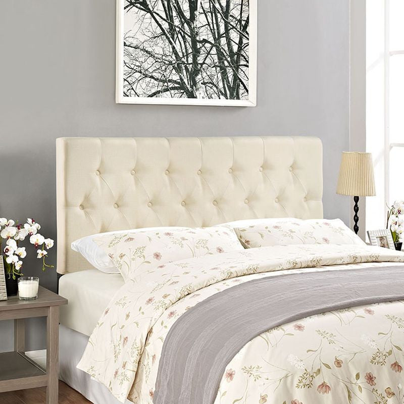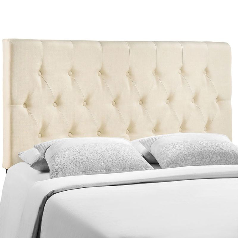 Deep tufted buttons patterned in a dazzling array adorn the Clique headboard series. Clique adds depth and elegance to a decor built on an uncomplicated style of fine lines and carefully implemented design elements. Clique is made from fiberboard, solid wood, and fine linen upholstering for a construction that is both lightweight and long-lasting. Introduce Clique to your contemporary bedroom for restful nights supported by a collaborative design. Available in a variety of colors.