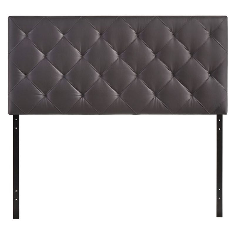 The versatility of this element of decor emphasizes its importance. As the headboard functions as the centerpiece of your bedroom, Theodore's deep button tufting makes sure to convey a classic style that can’t be dressed down. Fully upholstered in padded faux leather, the Theodore headboard imbues a strong sense of style, while presenting a modern piece full of boxy lines that accessorize with many looks.