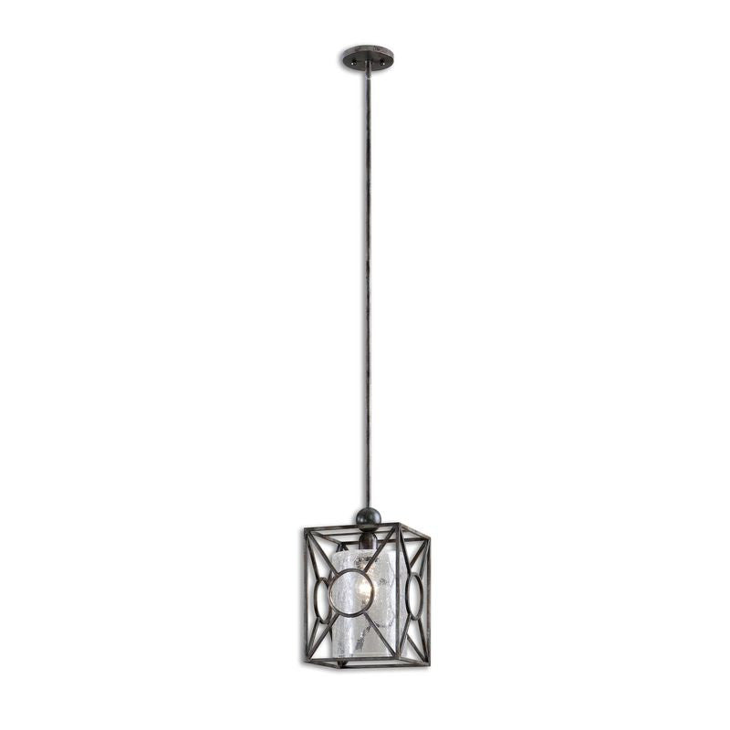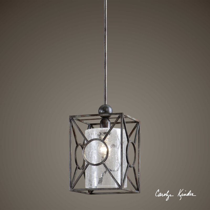 Rust black finish with aged gray undertones and a crackled glass cylinder inner shade.
