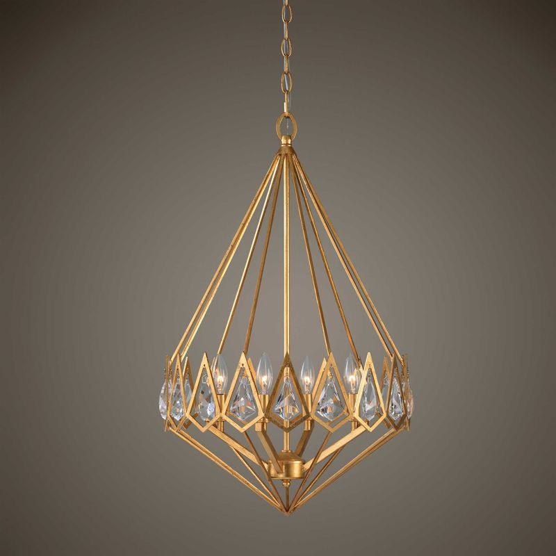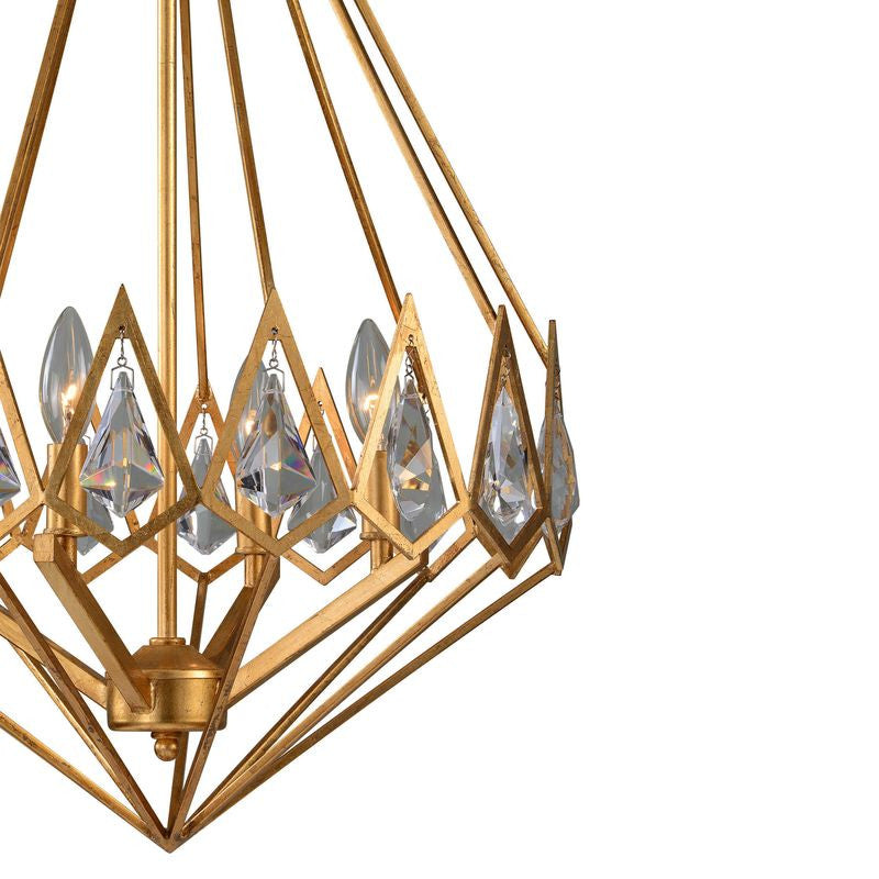 Elegant gold leaf finish shines on this diamond shaped pendant with brilliant clear crystal accents.