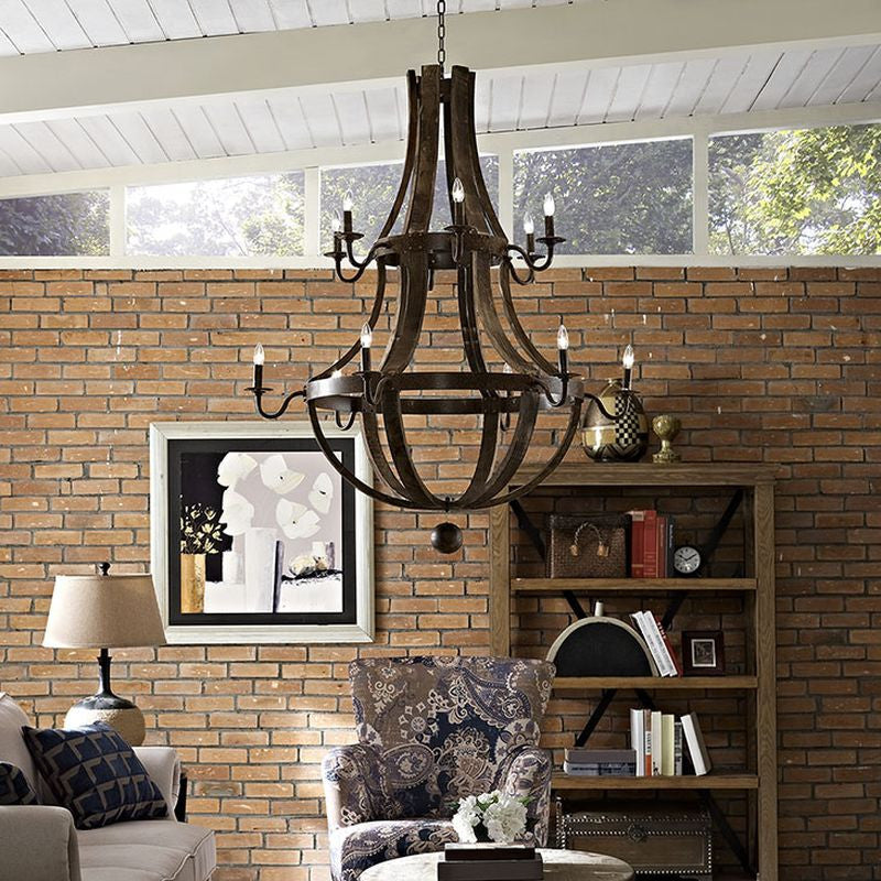 Propel your modern decor forward with the Trebuchet Chandelier. Inspired by medieval siege weaponry, Trebuchet is made of solid hardwood with a distressed effect that symbolizes the interplay between attrition and luminous victory. Constructed with a solid steel frame and adjustable steel chain, Trebuchet fits twelve bulbs and comes with a hanging steel ball that adds yet more vivacity to this momentum-filled piece. The Trebuchet Chandelier works well in rustic, ranch, industrial modern, and vintage modern dwellings.