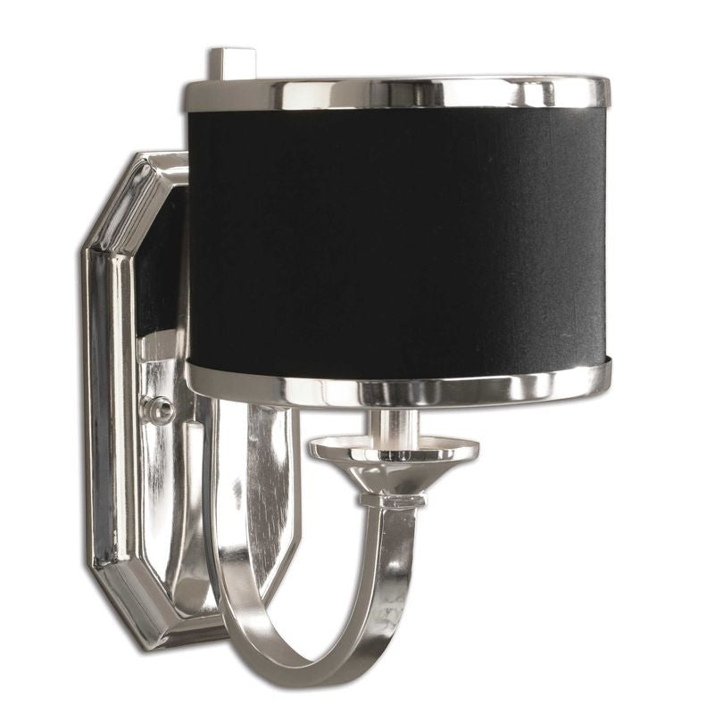 Sleek silver arms and smart black shading make this distinctive family unique. Silver plated metal with a black hardback shade.