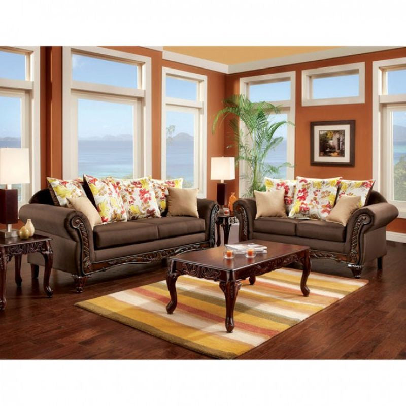 From rich upholstery hues to perfect curves, this collection features a traditional influence that is ready to be dressed up modern. Intricate wood carving outlining the collection arms and base, decorative feet & impeccably comfortable cushioning give each piece a timeless feel. - Transitional Style - Accent Pillows - Intricate Carving On Base & Legs - Sweetheart Style Back Cushion - High-Density Foam Cushions - Dark Brown - US-Made (Incl. Foreign Materials)