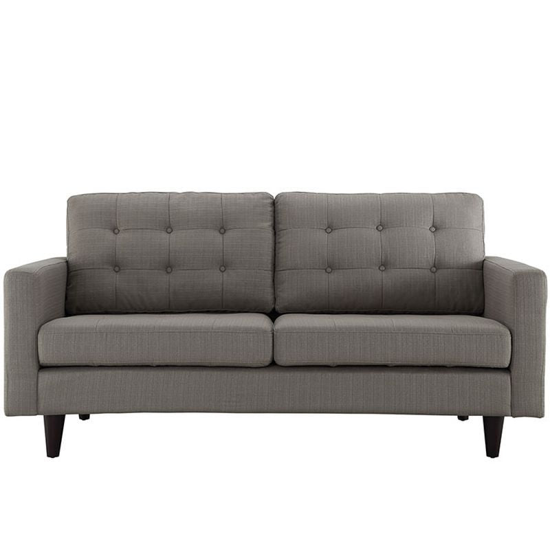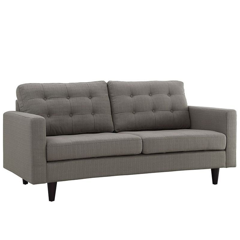 End the rule of unjust sovereignties that wage a useless war for your interiors. Empress leaves the would be heiress of holistic furnishings in the dust, with a design that rivals any competitor. Empress is heralded with deeply tufted buttons, plush cushions and armrests that convey that perfect air of nobility. The solid wood legs come with plastic glides to prevent floor scratching, and the fine fabric upholstery leaves the recipients feeling richly rewarded.