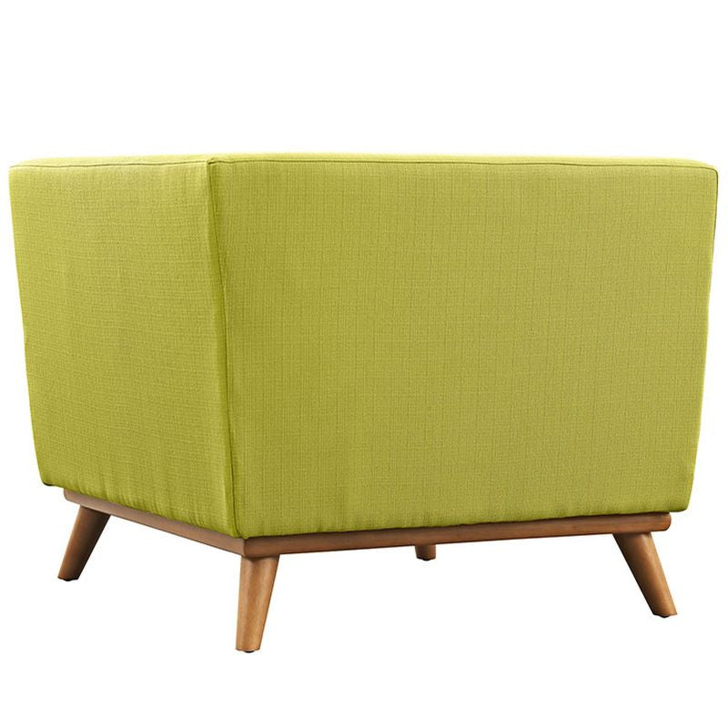 Gently sloping curves and plush cushions create a favorite lounging spot. Whether relaxing after a long day at work, settling in with coffee and brunch, or entering a spirited discussion with friends, the Engage corner piece is a welcome presence in your home. Four tufted buttons create eye catching appeal; adding depth that brings your seating decor to center stage. Rubber wood legs and frame supply a solid base to this quality upholstered fabric piece.