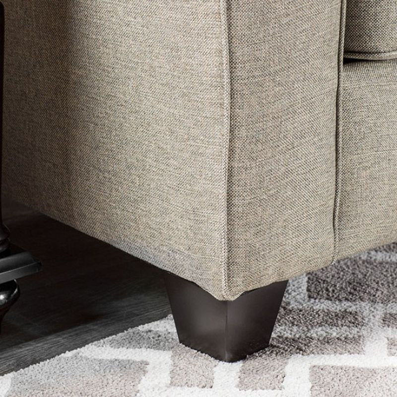 Keep your living space neutral and neat with this upholstered sofa collection. The warm gray creates a simple backdrop for the bright back pillows and wraps tightly around the no-fuss structure. A modest design for the easy going household, this set will be a staple for years to come. - Contemporary Style - Pillows Included - Loose Back Pillows - Fabric - High-Density Foam Cushions - Gray - US-Made (Incl. Foreign Materials)