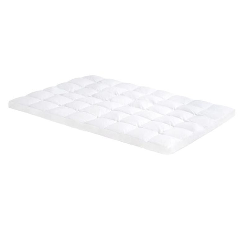 Three inches of plush, hypoallergenic down alternative fill encased in pure cotton create a cozy, breathable mattress topper. Baffle-box construction prevents fill from shifting to ensure even loft. Thick elastic anchor bands secure the fiberbed to the mattress at the corners. - Hypoallergenic down alternative fill - 100% cotton shell - Baffle box stitching - 3" thick down alternative mattress topper adds a plush layer to any mattress - Hypoallergenic down alternative fill offers the feel of down without odors or allergens - Breathable shell made of 250 thread count 100% cotton - Corner elastic anchor bands secure fiberbed to mattress