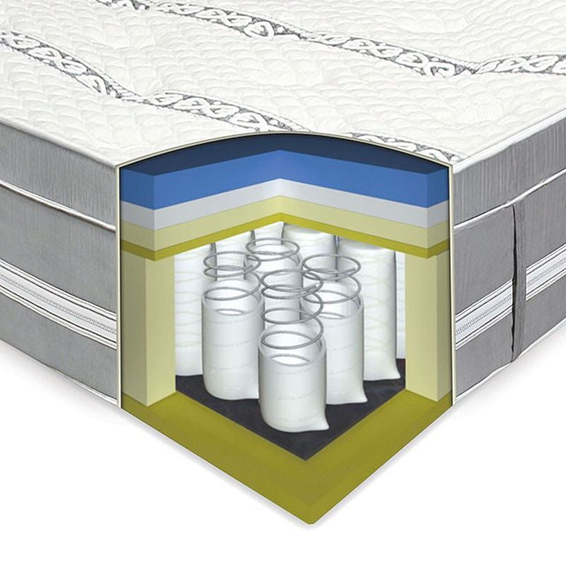 Euro pillow top mattress with gel memory foam. Provides soft comfort with latex lumbar support. Available in Full, Queen, Cal.King and E.King. - Quilting: 1/2" - Foam: 2" - Safety: 6 Cfr Part 1633 Flammable Standard Approved - Edge Support: 360 Degree Foam Encased Edge Support System, 11 1/2" - Innerspring: 744 11" - Coil Counts: F: 567 / Q: 677 / CK: 837 / EK: 870 - Comfort: Soft with Latex Lumbar Support - Warranty: 10 Year Non-Prorated Warranty - US-Made (Incl. Foreign Materials)