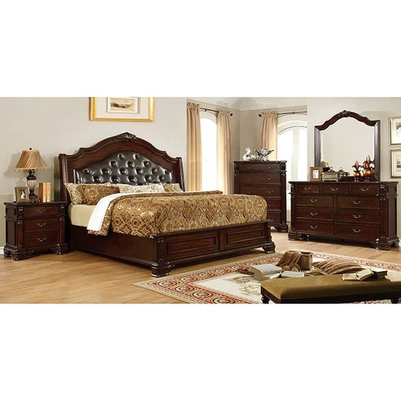 A traditional design with a modern twist, this bedroom collection can be paired with either of the two platform bed options. Paired case goods feature intricate wood carvings and are fitted with full extensions metal glides, felt-lined top drawers and antique look drawer pull handles. - Traditional Style - Antique Inspired Drawer Pull Handles - Intricate Wooden Carvings - Solid Wood/Wood Veneer/Others - Brown Cherry Finish