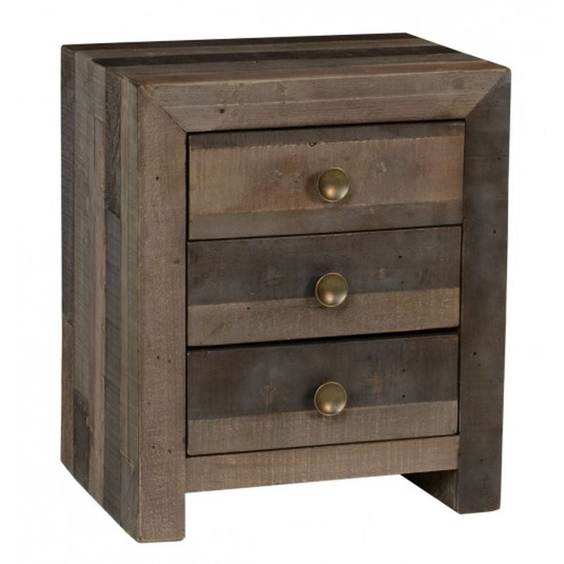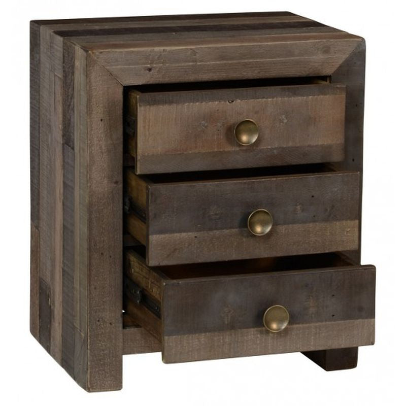 22W x 17D x 26H, Reclaimed Pine, Decorative iron accents, Drawers included, Hand finished distressed finish, Solid wood construction, Sustainable plantation grown wood, Transitional