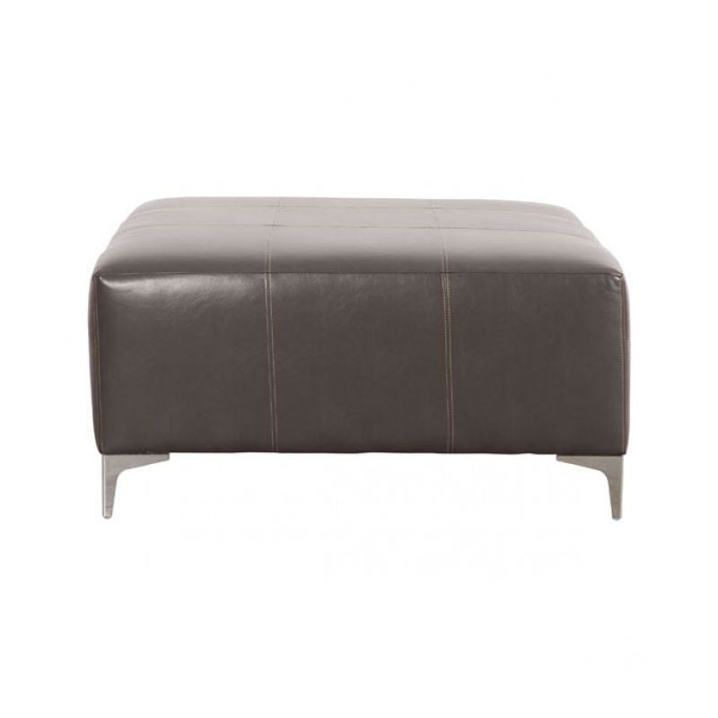 Multi-functional as a footstool, table or extra seat, the Memphis square ottoman features leather-look PU cover in Carbon with smart contrast stitching detail. Clean contemporary lines and stainless steel legs make this versatile piece an excellent choice. Complements the Memphis 2-pc. sectional.