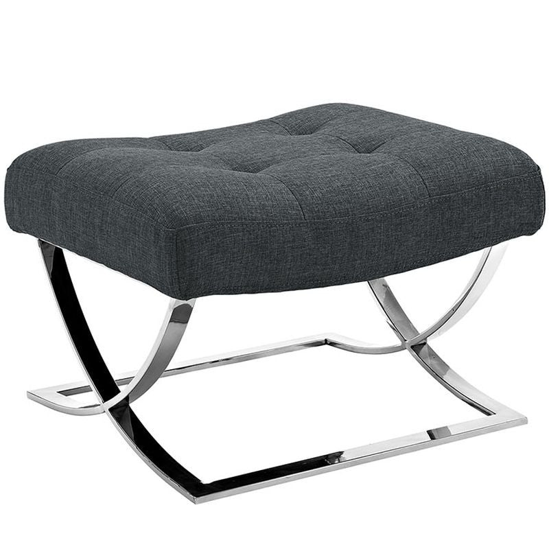 Steer your way forward. The Slope lounge chair and ottoman set was designed to serve as a carefree and comfort-filled way to spend your leisure time. Sip your beverage of choice and kick back for some quality quiet time. Slope is made with dense foam padding, comes finely upholstered in fabric with tufted buttons, and sports a polished steel base. The Slope lounge chair and ottoman series is perfect for modern living rooms and lounge spaces.