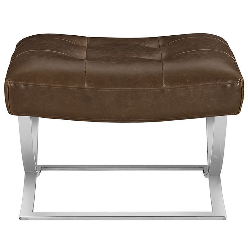 Steer your way forward. The Slope lounge chair and ottoman set was designed to serve as a carefree and comfort-filled way to spend your leisure time. Sip your beverage of choice and kick back for some quality quiet time. Slope is made with dense foam padding, comes finely upholstered in vinyl with tufted buttons, and sports a polished steel base. The Slope lounge chair and ottoman series is perfect for modern living rooms and lounge spaces.