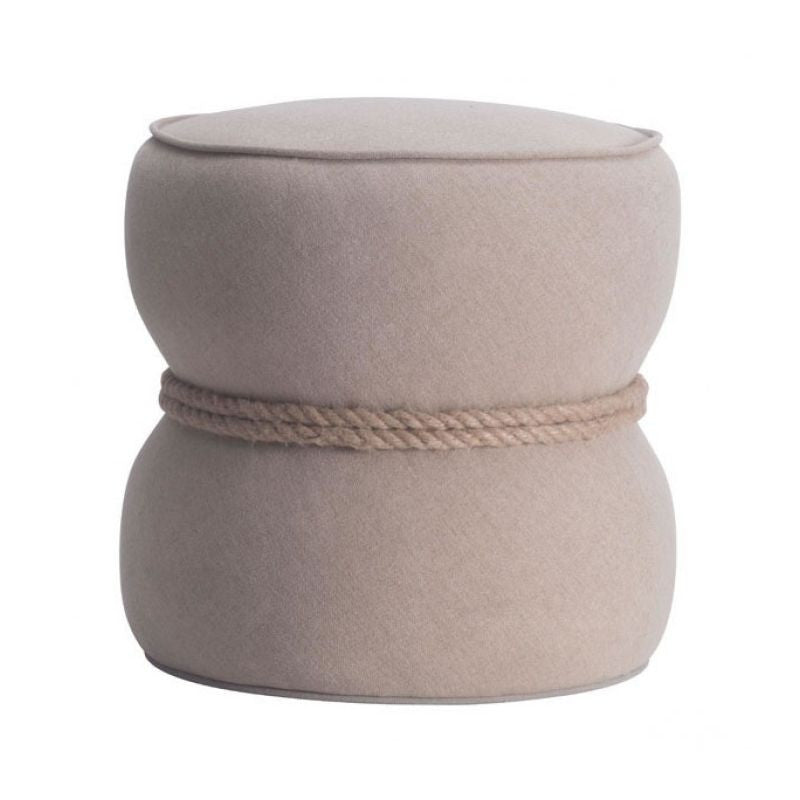 Tubby beige ottoman leads the fun with extra seating. Fully upholstered with a felt like poly-blend fabric in either orange, grey or beige. Each ottoman is accented by chic nautical style rope trim that cinches the middle creating a hourglass shape. Add in nursery or children’s rooms, or as extra seating to living room and guest rooms. Whether grouped together or just a single splash of color, you and your friends will love the look and feel of this new design. Size is W18.9 x D18.9 x H18.5.