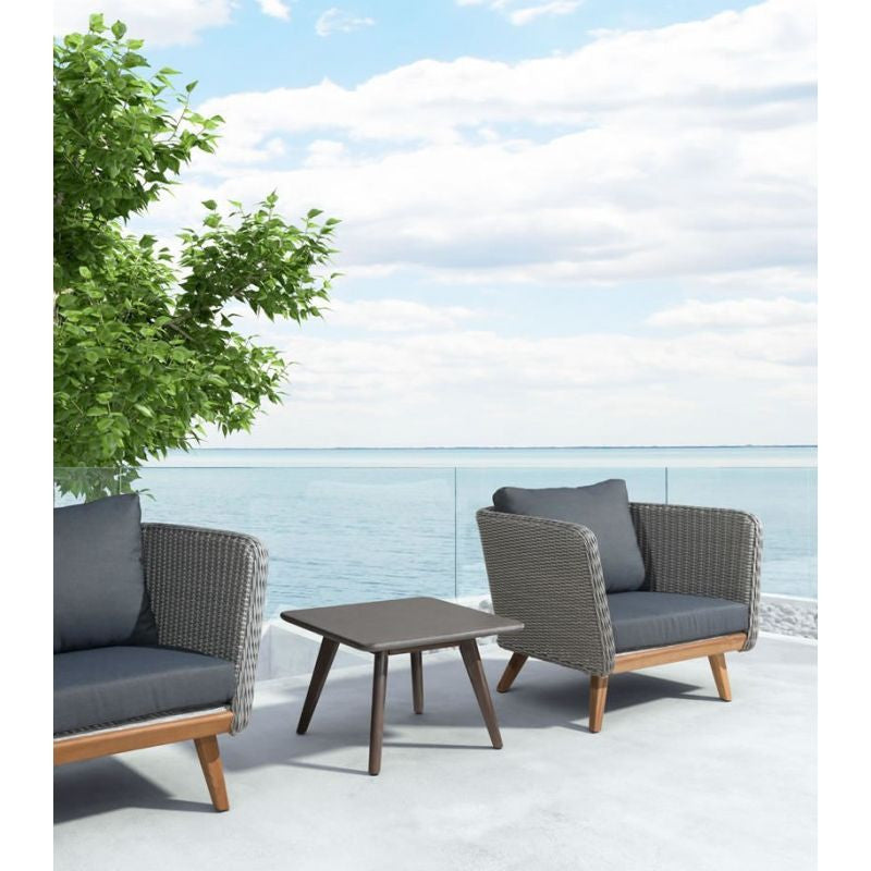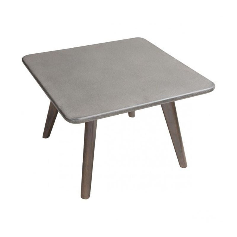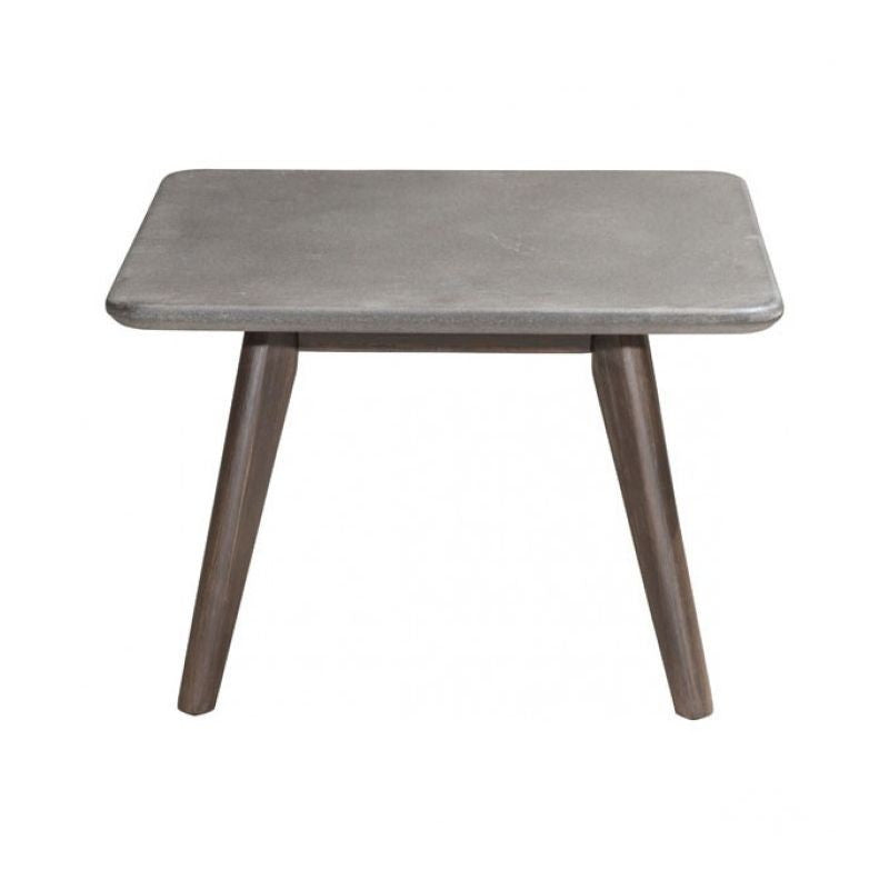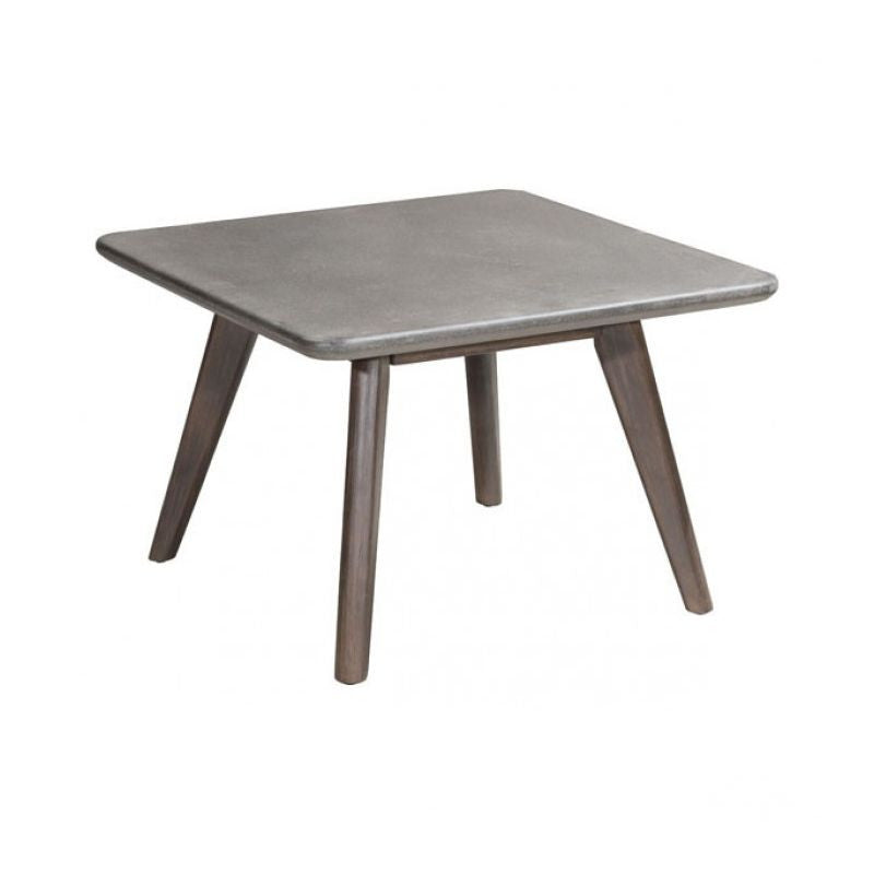 The Daughter Coffee table with it's Modern geometric shape; is made from epoxy and cement-blend and features angled legs made from solid Acacia Wood finished is a contemporary dark walnut stain. Top is engineered to be a non-porous and is designed to be easily cleaned with any household detergent. This table exemplifies strength and style for any space outdoor or indoor.