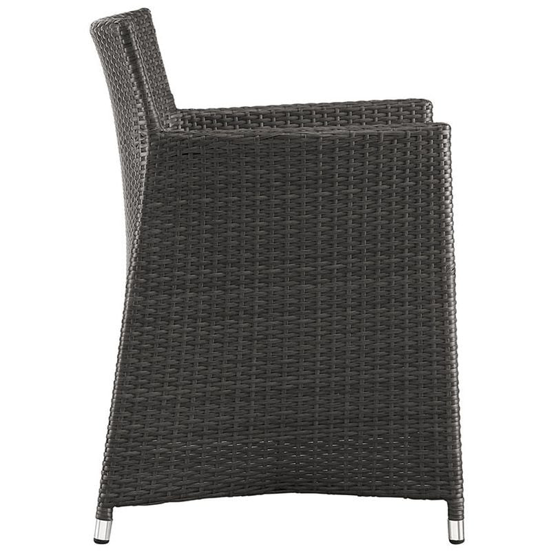 Converge for great moments spent outdoors with the Junction Rattan Weave Armchair. Junction is a proudly designed piece with an audacious style that encourages lively repartee. Covered in a synthetic rattan weave, all-weather machine washable seat cushion, and powder-coated aluminum frame with plastic foot glides, Junction does not require assembly, and comes ready for contemporary patios, backyards, poolsides, and other outdoor lounge areas.