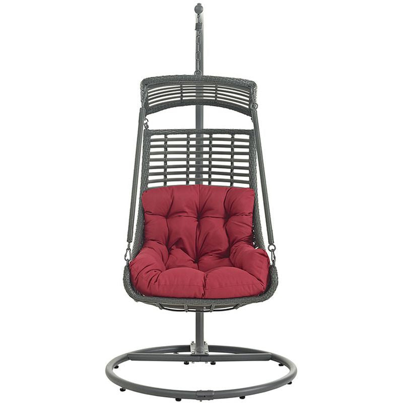 Actualize your inner tree swinging ambitions with the Jungle Swing Chair. Made with an exotic outdoor recreation themed design, Jungle comes outfitted with an all-weather synthetic rattan seat, water resistant plush fabric cushion, and sturdy powder coated steel frame with hanging chain. Inspired by adventure and discovery, Jungle’s look and utility works well in patios, backyards or porches. Stand-alone swing hammocks are also popularly used in indoor lounge, living or bedroom spaces. Jungle is weather and UV resistant. Assembly Required.