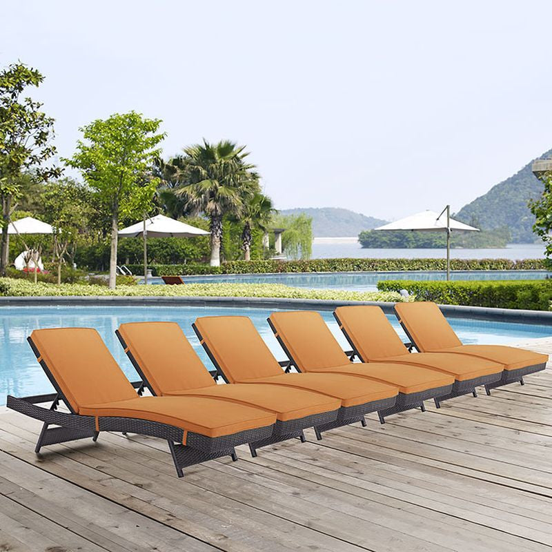 Convene Chaise Outdoor Patio Set of 6 in Espresso Orange
