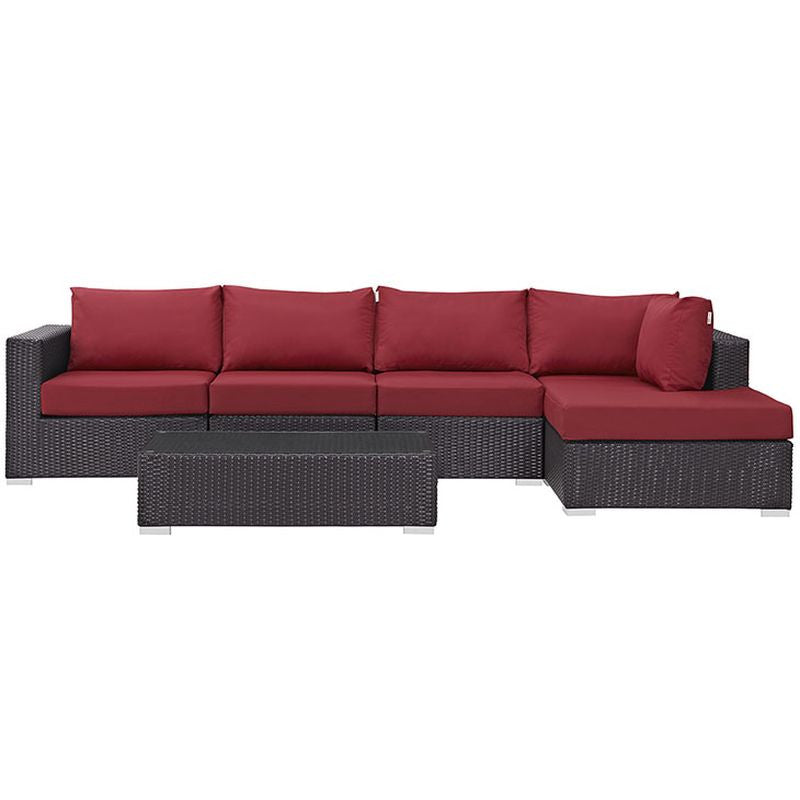 Convene 5 Piece Outdoor Patio Sectional Set in Espresso Red