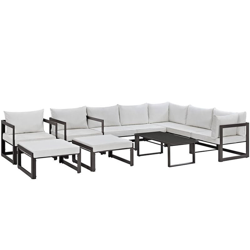 Fortuna 10 Piece Outdoor Patio Sectional Sofa Set in Brown White