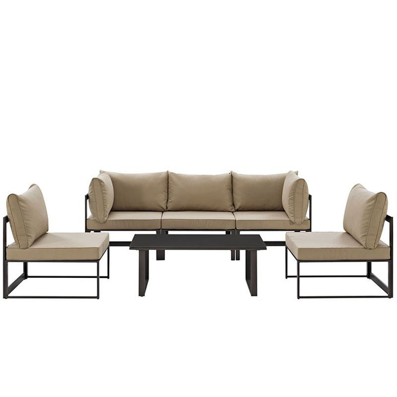 Fortuna 6 Piece Outdoor Patio Sectional Sofa Set in Brown Mocha