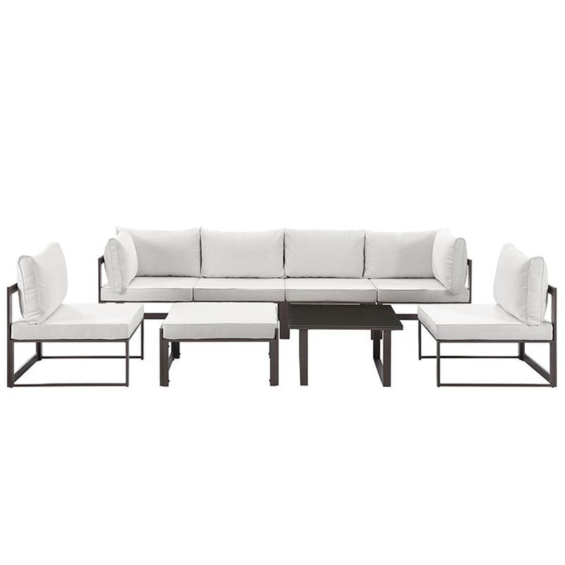 Fortuna 8 Piece Outdoor Patio Sectional Sofa Set in Brown White