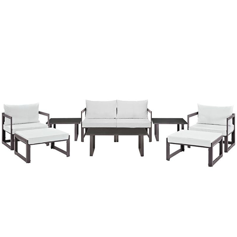 Fortuna 9 Piece Outdoor Patio Sectional Sofa Set in Brown White
