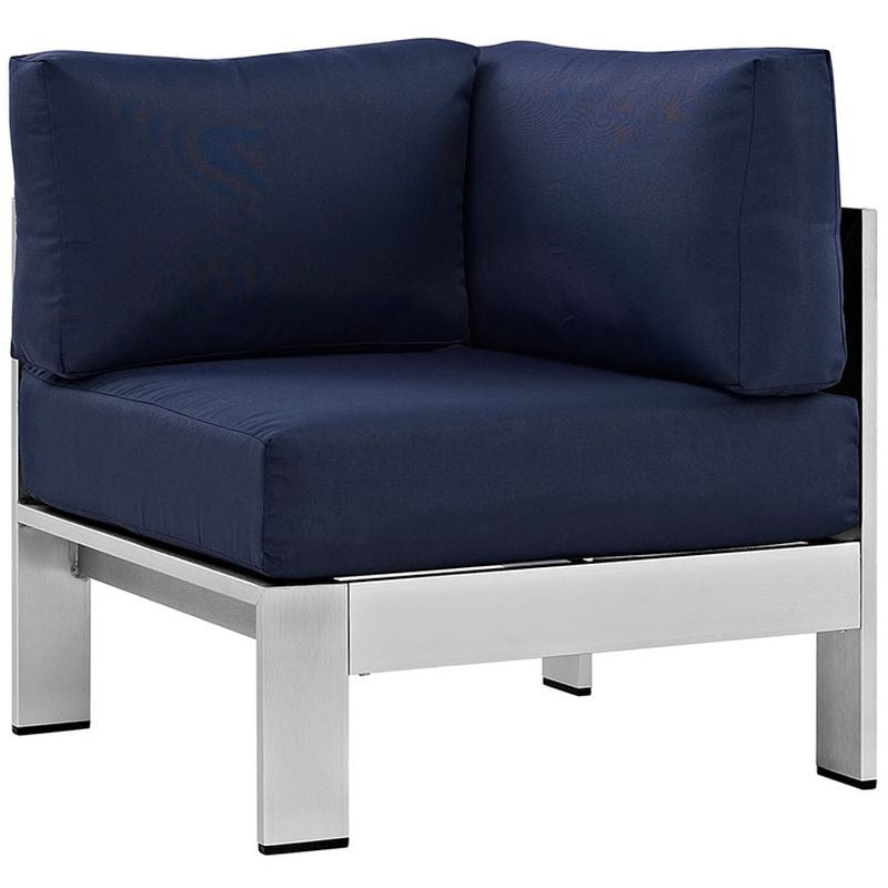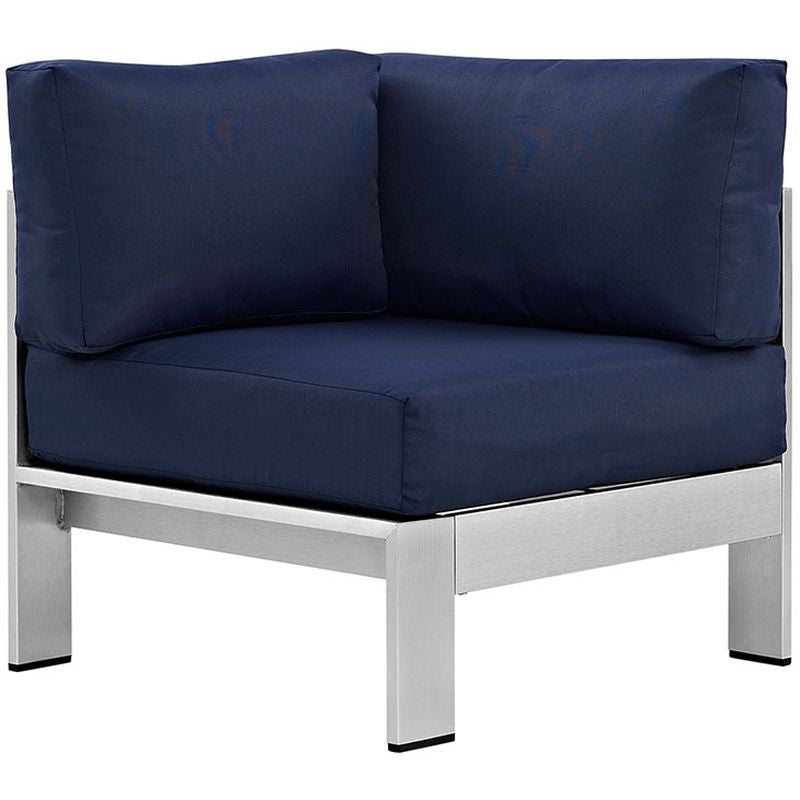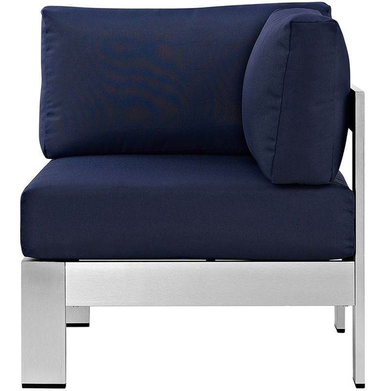 Shore Outdoor Patio Aluminum Corner Sofa in Silver Gray