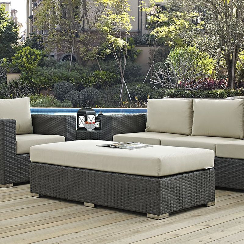 Sojourn Outdoor Patio Fabric Sunbrella® Rectangle Ottoman in Canvas Antique Beige