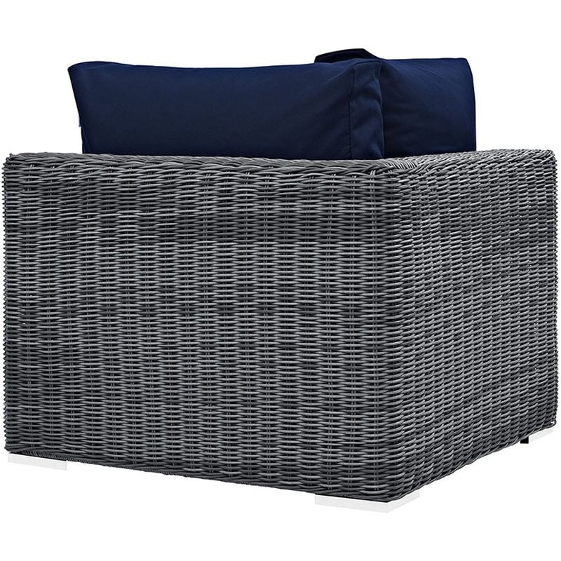 Experience the outdoors with exceptional comfort and quality. Summon offers an exquisite two-tone synthetic rattan weave, plush all-weather cushions with industry-leading Sunbrella® fabric, UV protection, and a sturdy powder-coated aluminum frame. Featuring rounded arms and an elegant modern look, Summon is an avant-garde outdoor sectional series well-equipped for enhancing patio, backyard or poolside gatherings. This installment of the series is an Outdoor Patio Corner.