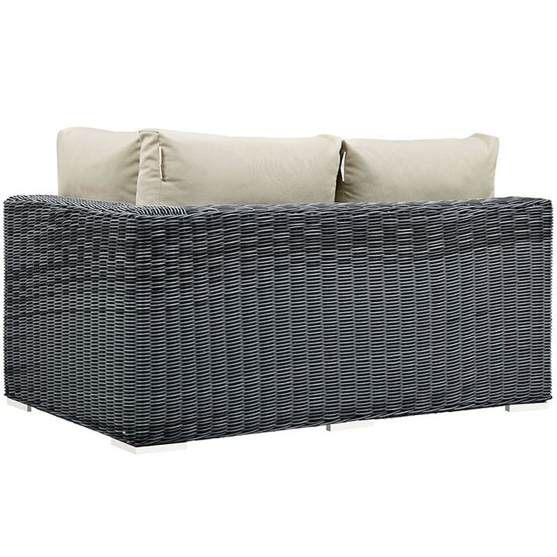 Experience the outdoors with exceptional comfort and quality. Summon offers an exquisite two-tone synthetic rattan weave, plush all-weather cushions with industry-leading Sunbrella® fabric, UV protection, and a sturdy powder-coated aluminum frame. Featuring rounded arms and an elegant modern look, Summon is an avant-garde outdoor sectional series well-equipped for enhancing patio, backyard or poolside gatherings. This installment of the series is an Outdoor Patio Right Arm Loveseat.
