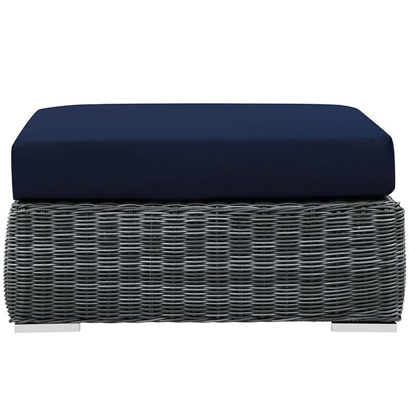 Experience the outdoors with exceptional comfort and quality. Summon offers an exquisite two-tone synthetic rattan weave, plush all-weather cushions with industry-leading Sunbrella® fabric, UV protection, and a sturdy powder-coated aluminum frame. Featuring rounded arms and an elegant modern look, Summon is an avant-garde outdoor sectional series well-equipped for enhancing patio, backyard or poolside gatherings. This installment of the series is an Outdoor Patio Square Ottoman.