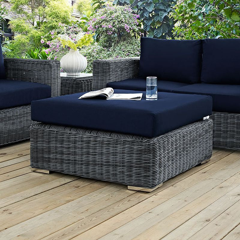 Summon Outdoor Patio Sunbrella® Square Ottoman in Canvas Navy