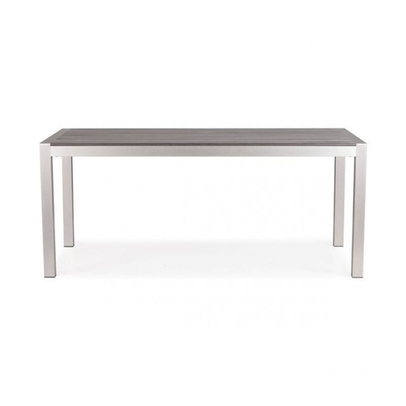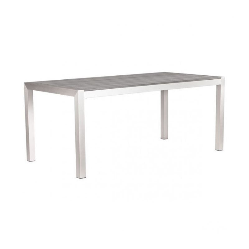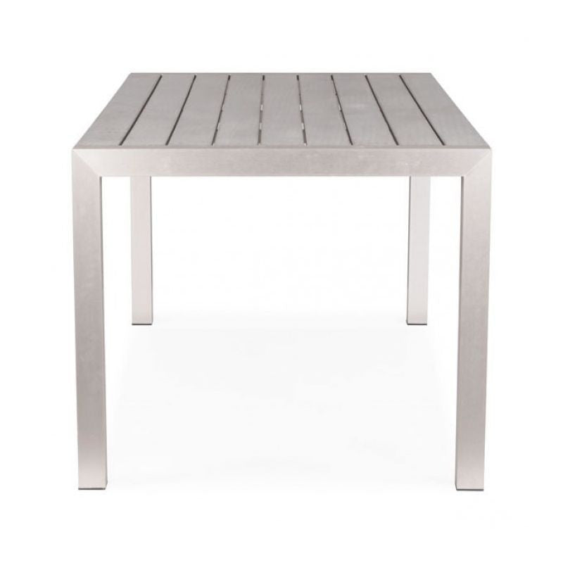 Clean and contemporary, the Metropolitan Dining Table makes for the ultimate al fresco experience. The frame is brushed aluminum and the top is polyurethane simulated wood. The perfect place to serve up your favorite herbed pasta salads and frosty bottles of beer.