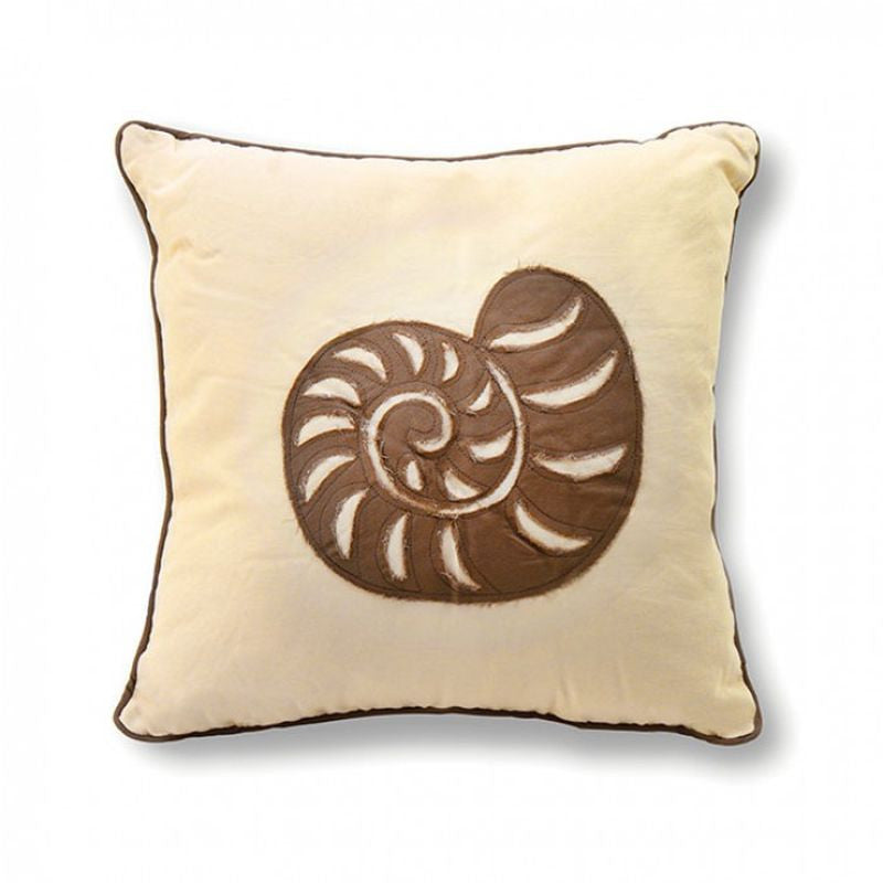 A coastal room will look even better with an accent pillow like this. It features a seashell In brown with matching brown trim. - Cotton - 18" X 18" - Made in China - Beige,Tan