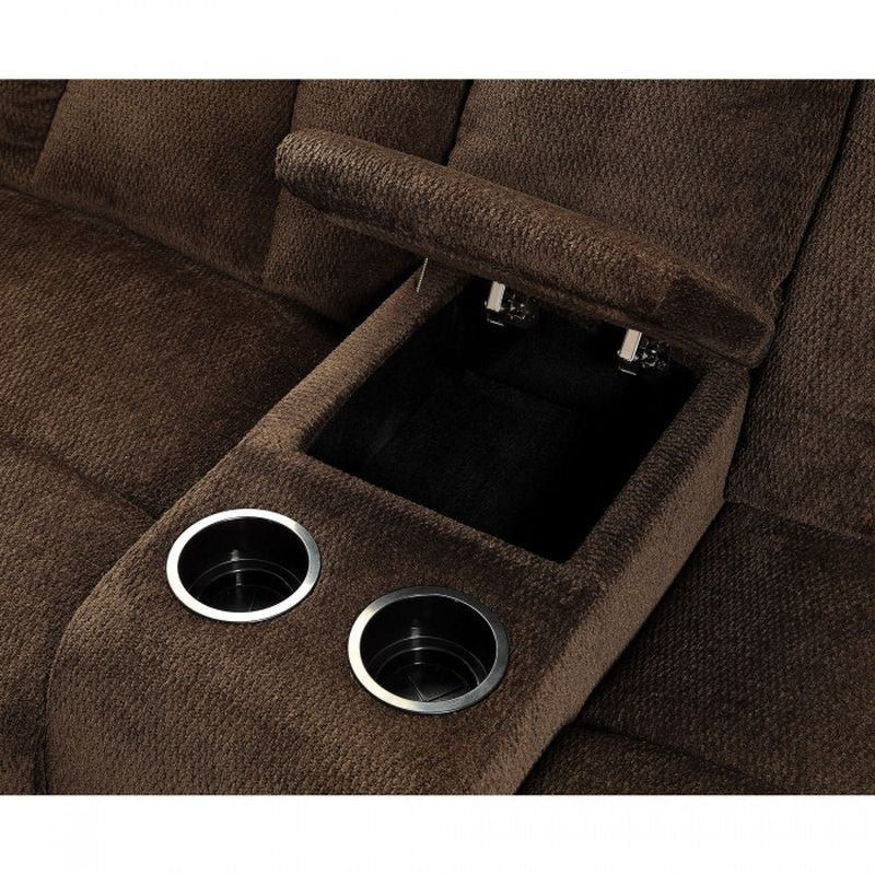 Host fun movie nights or crazy game day parties with the ultimate sofa set. With reclining capabilities, cup holders, storage compartments and plush chenille upholstery, you and your guests will not want to get up from your seats! The neutral fabric options are the perfect backdrop that will both blend in and enhance the beauty that fills a living space. - Transitional Style - Built-in Cup Holders & Storage - Chenille Fabric - Plush Cushions - Brown