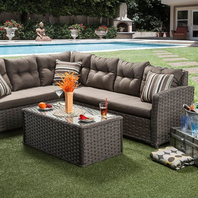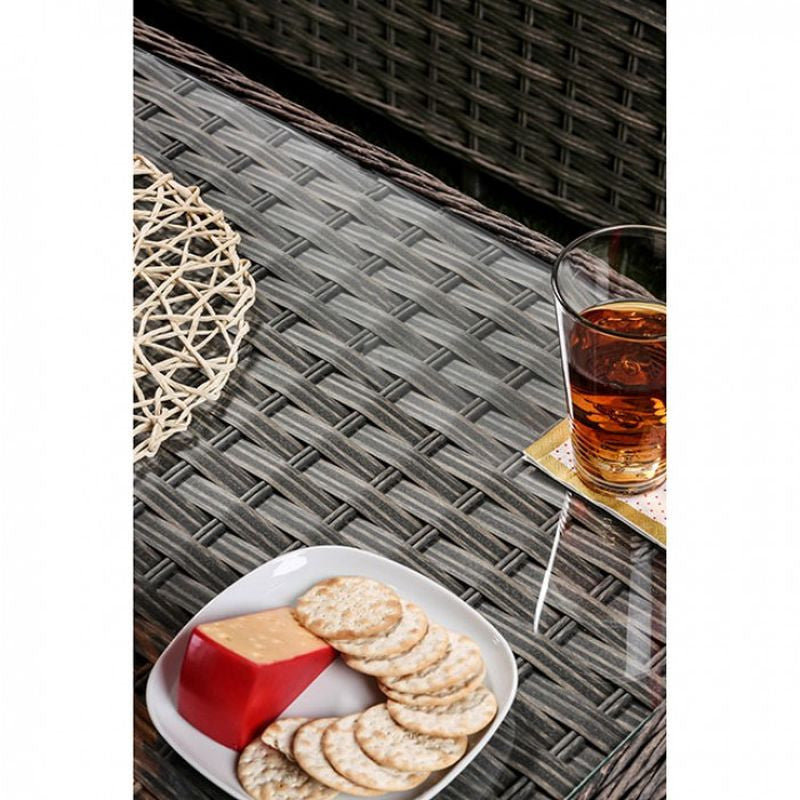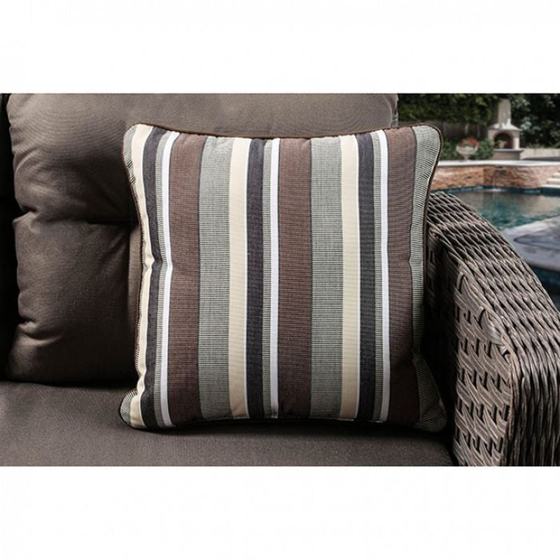 Enjoy your outdoor surroundings with this beautiful outdoor sofa and table set, featuring a charming sofa with padded seating supported by an aluminum and wicker frame, and a stylish coffee table with tempered glass table top. - Contemporary Style - Aluminum & Wicker Frame - UV & Water Resistant - Pillows Included - Optional Table Available - Tan Fabric Cushions