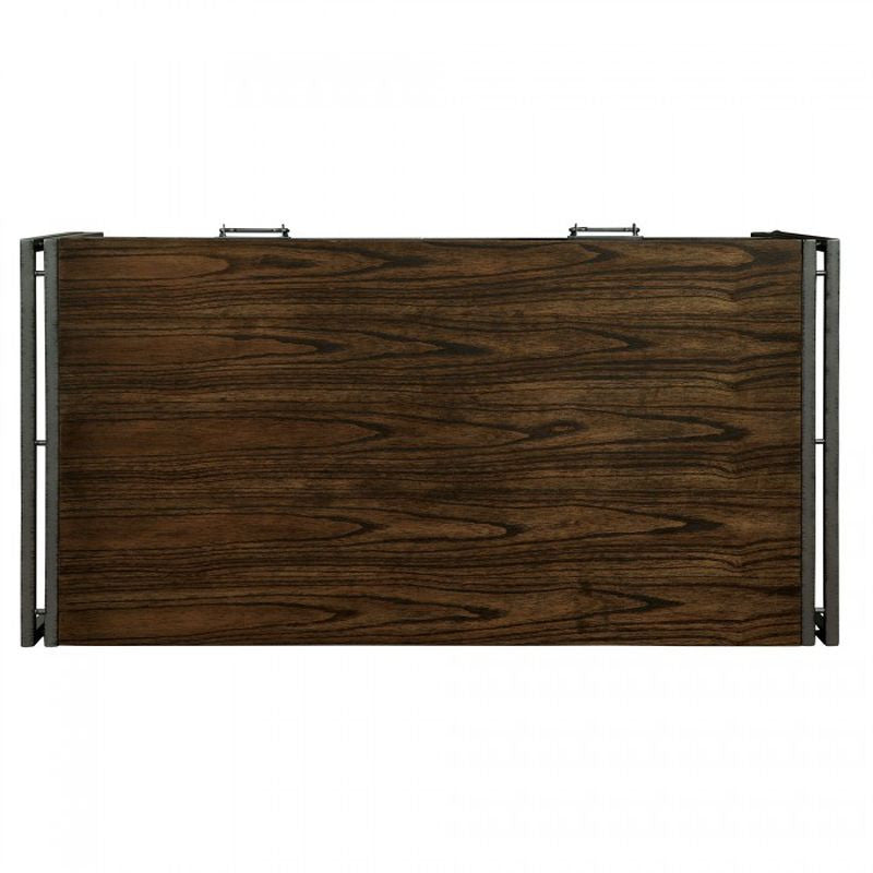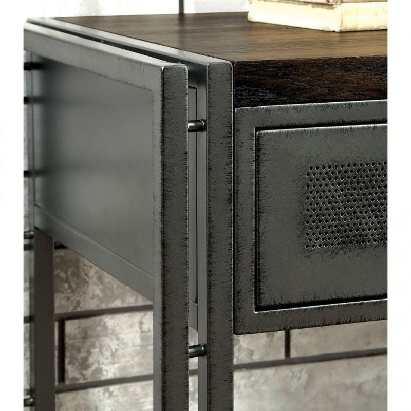 Steal a glimpse at this industrial style living room collection and you won - Industrial Style - Storage Drawers - Wood-like Table Top - Open Bottom Shelf - Metal Framework - Grey Silver w/ Brushed Black Finish