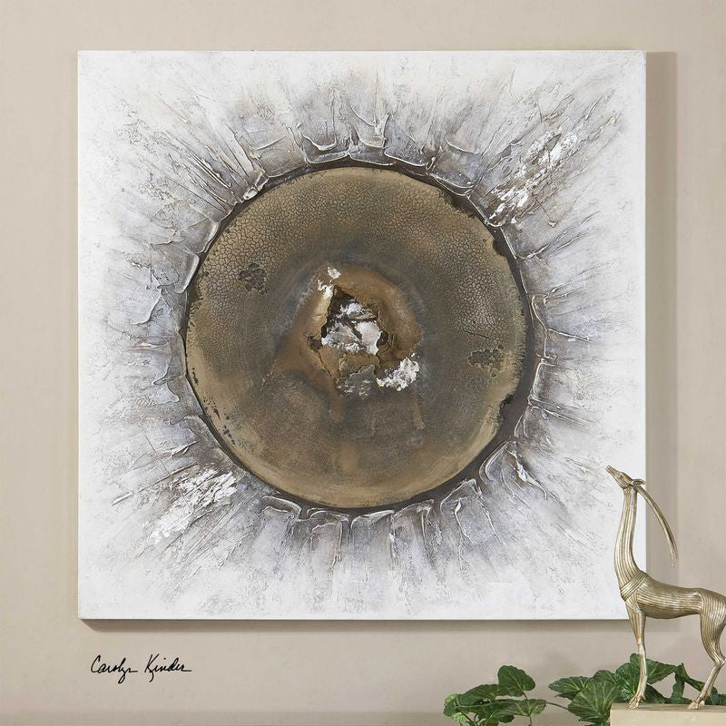 Hand painted on canvas, this artwork is stretched and attached to wooden stretching boards. Due to the handcrafted nature of this artwork, each piece may have subtle differences.