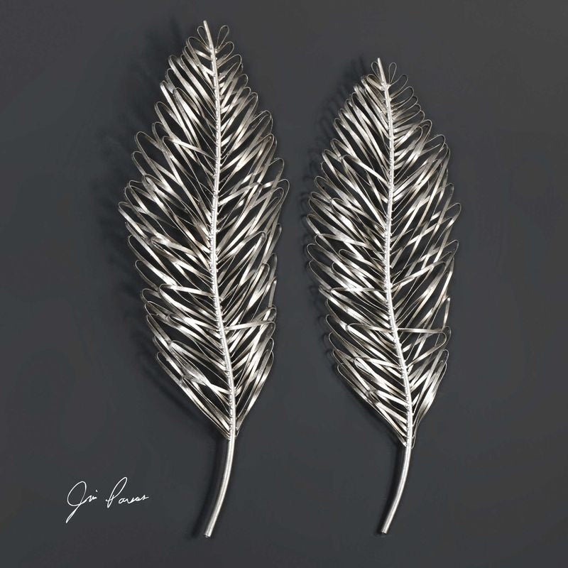 Individually hand crafted iron loops are welded together to create these artisan leaves, with a lightly antiqued metallic silver finish.