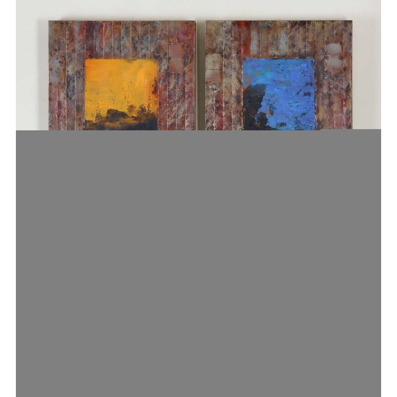 This colorful artwork has been hand painted on reclaimed wood. Due to the handcrafted nature of this artwork, each piece may have subtle differences.