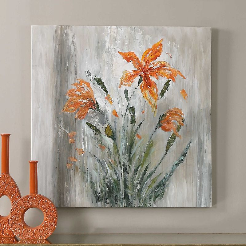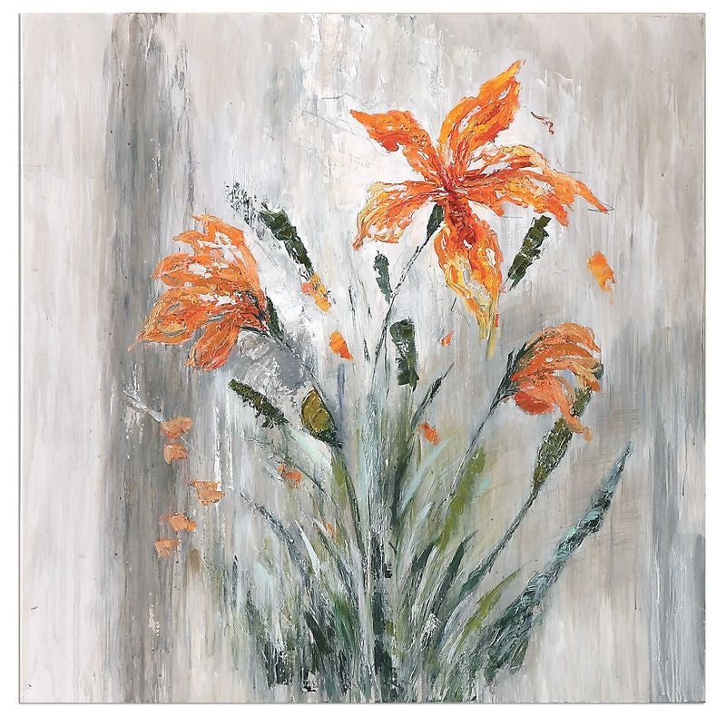 Delightful colors used in this hand painted artwork on canvas. The artwork is stretched and attached to wooden stretching boards. Due to the handcrafted nature of this artwork, each piece may have subtle differences.